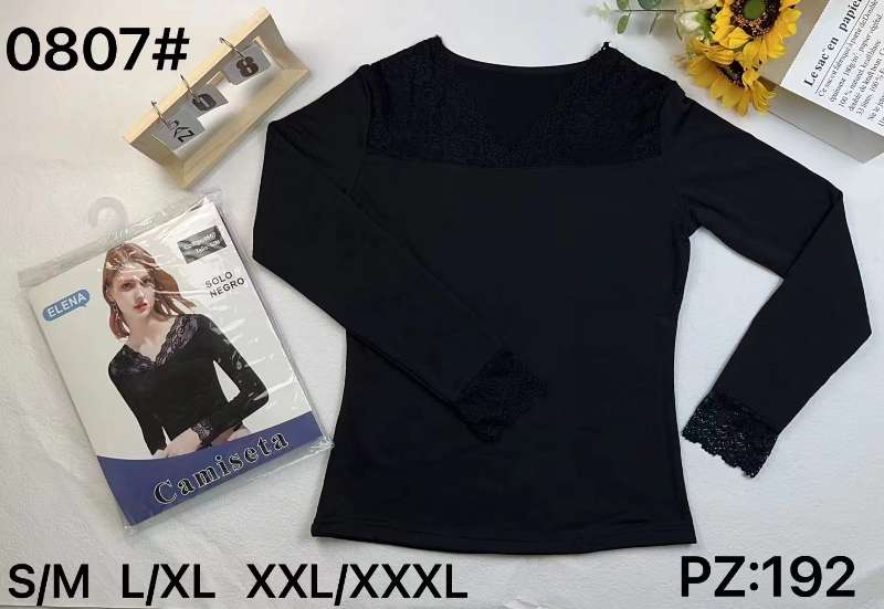 Haut thermique à manche longue en dentelle couleur noir (x12)